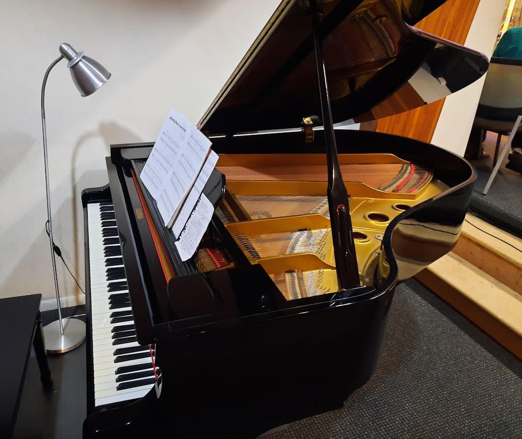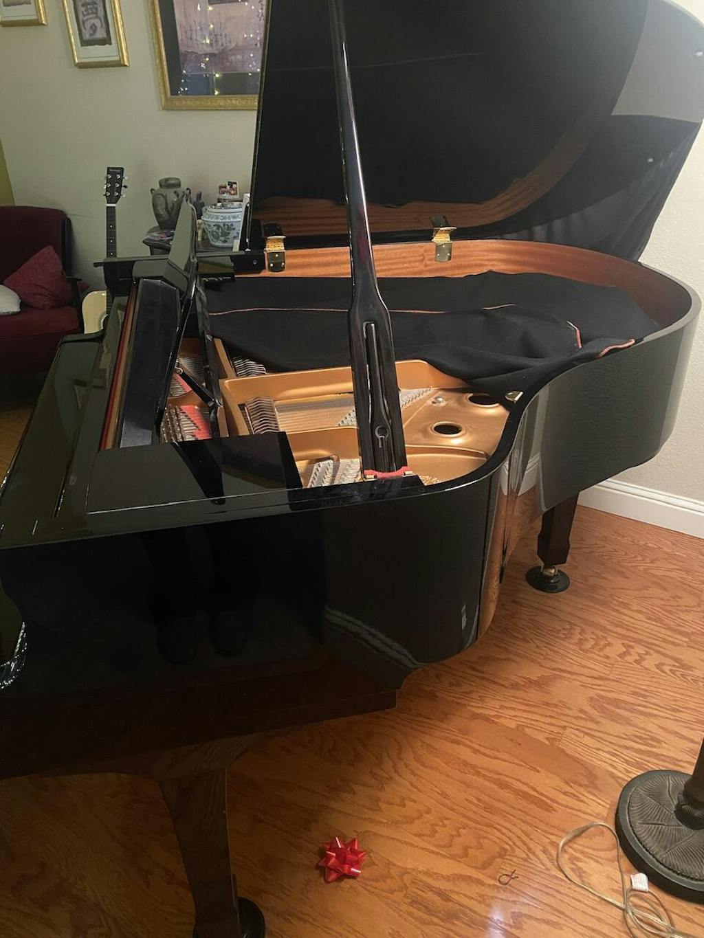 My local church recently acquired a beautiful new baby grand piano (parishioner donations, mostly). I noticed it was naked; after.few weeks I noticed it didn't have a cover to protect from the weather (humidity, cold, etc) nor the grimy fingerprints of random hands. I also noticed Folks setting music binders on top, which put the piano in danger of getting scratches.